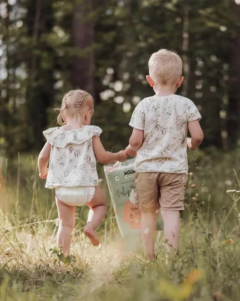 At Moomin Baby, we are working for a cleaner future so that future generations can enjoy our shared nature. That’s why our diapers are manufactured with the entire life cycle of the product in mind, from the choice of raw materials to the disposal of the product. We have been awarded the Nordic Swan Ecolabel, and its strict criteria is only the minimum requirement for us to be environmentally responsible.
